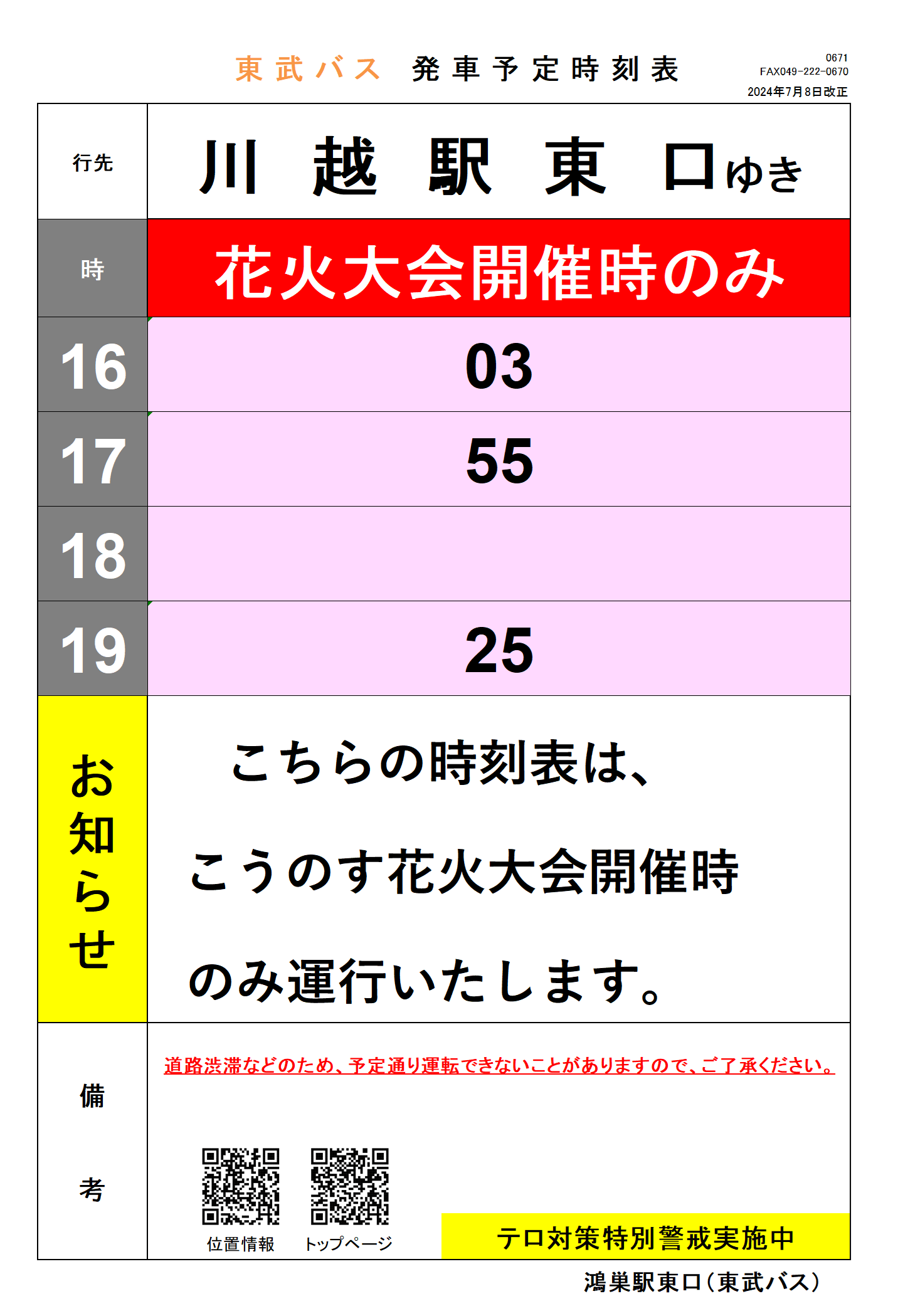 時刻表、運休などの詳細は鴻巣市のホームページ等でご確認ください。